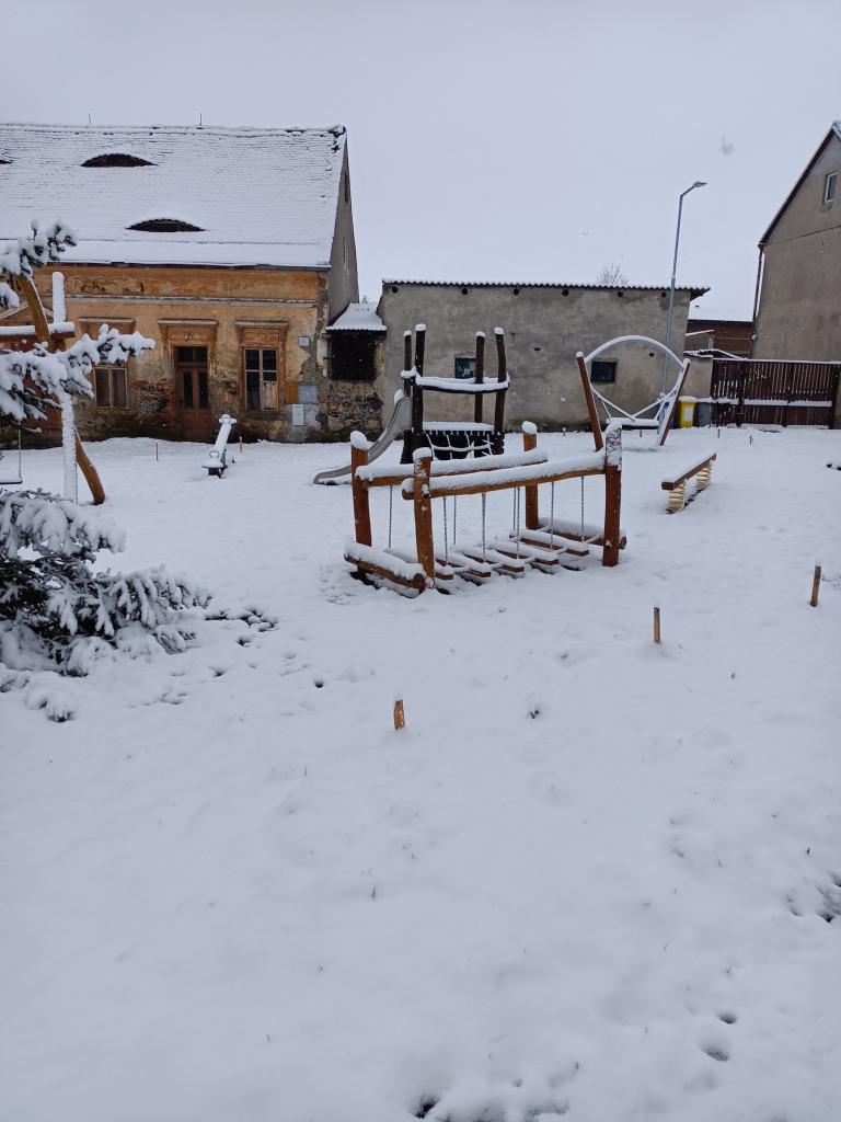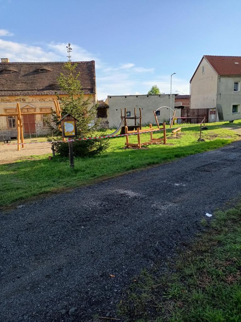 V roce 2016 jsme díky dotaci od ministerstva pro místní rozvoj nechali umístit i jeden prvek na náves ve Vintířově s tím, že podle možností bude toto malé hřiště doplněno. Nejprve jsme museli také najít vhodný pozemek, protože palouk na vintířovské návsi vedle statku je majetkově rozdělen a obci patří jen část. Proto bylo vybráno asi jako nejvhodnější místo podle našich možností před domem pana Linky v jihovýchodní části (je i stranou hlavní silnice), tato plocha byla geodeticky oddělena a muselo být změněno její využití z ostatní plochy – ostatní komunikace, jak je vedena většina vintířovské návsi, na sportoviště a rekreační plochu už ve zmíněném roce 2016. Počátkem ledna 2023 požádali o dotaci Nadaci ČEZ – Podpora regionů ve výši 300.000,- Kč, přislíbena nám byla dotace ve výši 150 000,- Kč. V pátek 24. února byla odeslána elektronická poptávka na dodávku prvků pro dětské hřiště ve Vintířově, termín pro podání nabídek byl 14. březen. Poptány byly 3 firmy, které rovněž podaly nabídku, kritériem byla cena, nejlevnější nabídku podala firma hřiště.cz Brno s cenou 277 755,50 Kč, což schválilo i zastupitelstvo obce. Ve středu 23. srpna začaly výkopové práce pro umístění herních prvků na dětské hřiště ve Vintířově, instalaci prvků prováděli pracovníci firmy hřiště.cz od 29. srpna do 1. září. V průběhu září 2023 byly dokončeny terénní úpravy. Celkové náklady (bez oplocení) s tím, že jsme si terénní práce dělali svépomocí, činí 307 370,- Kč (z toho prvky stály 277 756,- Kč), dotace od Nadace ČEZ činí 150 000,- Kč.